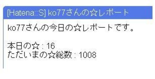はてなにスターを設置してとうとう1000を超えました。 ダイアリーでもたくさんスターを押していただき 誠にありがとうございます。